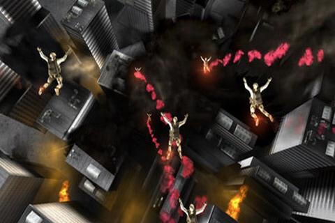 游戏的操作非常有趣,采用不同的场景以不同的操作来控制,当玩家刚出来的时候是在高空跳伞,所以只要摇动手机用重力感应来控制人物移动方向即可。在跳伞的时候我们要控制人物不让其与其他人相撞,灵活的摇动手机是非常重要的,而且以第一人称的视角让玩家不仅仅是左右摇动,还需要前后摇动一起控制,可不是那么简单就能完成的。